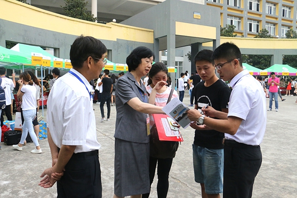 迎新当天8点30分,院长江舒,督导专员、院党委第一书记王宜深入一线看望新生、家长和工作人员,并指导迎新工作。江舒院长一行逐一走访了分布在1号教学楼前各个分院和专业的新生接待点,向有关负责人、现场接待工作人员详细询问了新生报到等情况,勉励他们再接再厉,并与前来报到的新生和家长亲切交谈。江舒院长对所有工作人员的辛勤劳动表示感谢,并送上教师节的祝福,叮嘱大家一定要用心、细心、耐心、周到地做好迎新工作。