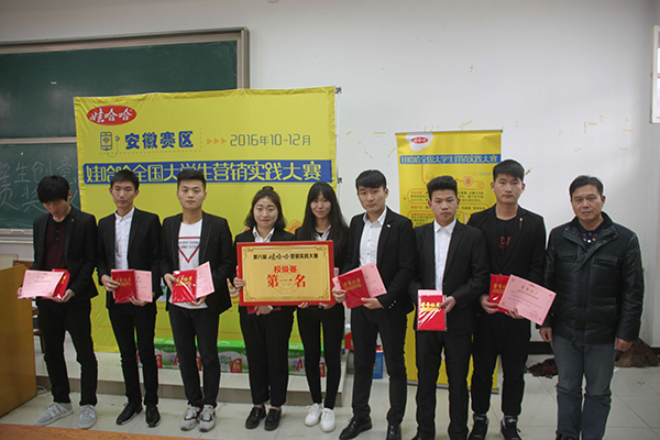 经过一个月的紧张比赛,由院创业指导委员会、院就业办、院团委联合举办的第八届全国大学生哇哈哈营销实践大赛校级赛圆满落下帷幕。12月7日下午,在3202教室隆重举行了第八届全国大学生哇哈哈营销实践大赛校级赛的颁奖典礼。院创业指导委员会副主任、财经分院院长李德明,杭州娃哈哈集团安徽分公司高校市场总监陈晓春先生,学院团委洪丽老师,财经分院辅导员盛婷婷老师应邀参加本次颁奖典礼。