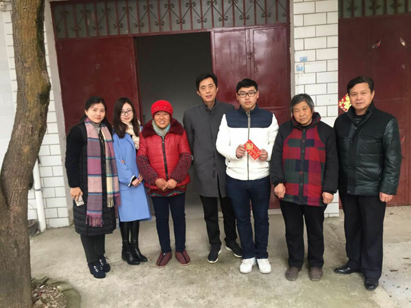 为深入宣传党和国家有关高校家庭经济困难学生资助政策,进一步了解家庭经济困难学生家庭经济真实状况及学生受助后的学习生活情况,加强学院与经济困难学生家庭的联系,鼓励学生继续努力。2017年1月18日至1月20日,万博科技职业学院副院长刘文慧,副院长、党委副书记、管理分院院长刘瑞平,财经分院院长李德明,理工分院院长苏仕华等领导代表学院看望家庭经济困难并享受资助的学生代表。