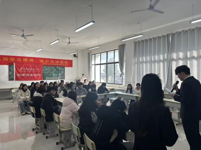 12月5日,国际商务学院学生会举办的宪法知识竞赛精彩开赛。活动历经初赛选拔与决赛角逐,各参赛队伍沉着应答、默契配合,围绕宪法基础知识、核心条款及应用场景展开激烈比拼,充分展现了我校学子扎实的宪法知识储备与良好的精神风貌。最终,“萌的都队”斩获一等奖,“就跟你们作队”荣获二等奖,“说的都队”“摸鱼小队”获评三等奖,“有什么不队”获得优秀奖,竞赛以以赛促学、以学促行的方式,激发了学子们学习宪法的积极性与主动性。