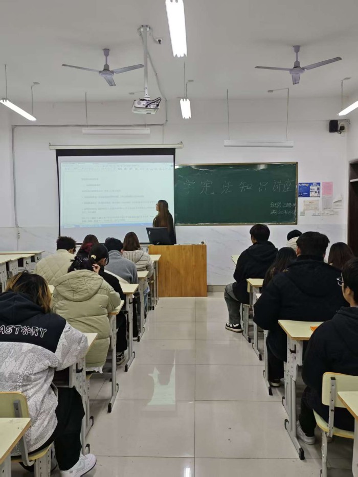 宪法宣传周期间,各班级团支部同步开展宪法知识讲座主题团日活动。团支书们化身“普法宣传员”,聚焦宪法中公民基本权利与义务、国家根本制度、等与青少年成长密切相关的条款,结合校园生活实例与典型案例进行细致解读,让抽象的法律条文变得通俗易懂,引导全体团员青年在互动交流中夯实法治根基,深化对宪法精神的理解与认同。