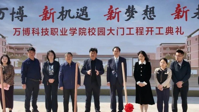 暮春四月,生机勃发。4月7日,万博科技职业学院校园内彩旗招展,洋溢着喜庆热烈的氛围,备受瞩目的校门奠基仪式在此隆重举行。